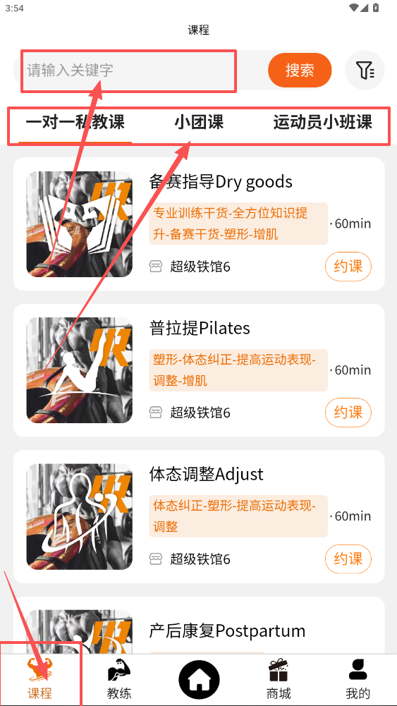 4、支持在线预约课程,选择所需课程与时间就能完成下单,轻松享受优质健身服务。
