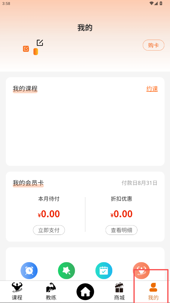 3、提供会员卡购买服务,解锁专属健身权益,提升整体健身体验与训练效率。