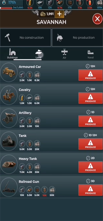 4、 资源积累与军备打造、飞机、大炮等重型装备需消耗大量金钱。