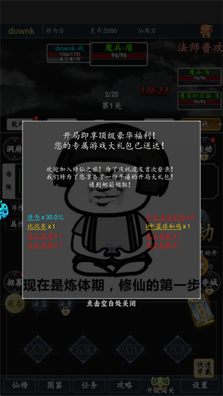 4、资源积累、利用上线赠送的 30 亿修为快速突破初期境界,通过日常任务、副本挑战、PVP 玩法获取灵币、进阶丹等资源,支撑养成消耗。