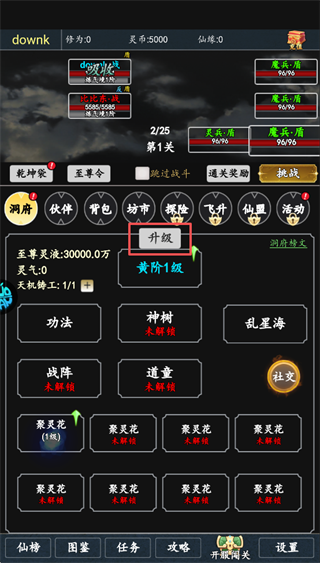 1、养成系统升级、功法升级可直接增强核心属性与技能效果;神树升级能持续产出养成资源;战阵升级需装备风、雷等 6 种阵图元素并消耗进阶丹,9 阶后需加无双阵法石升星,5 星后解锁更强技能。
