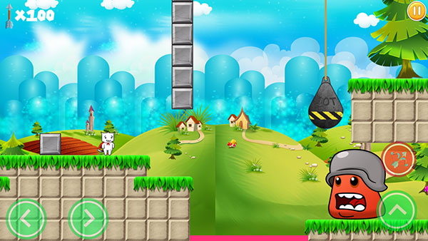 2、采用经典的虚拟按键操作模式,可通过按键控制猫里奥完成左右移动和跳跃动作。在冒险途中,能踩死乌龟、蘑菇等拦路的小怪物,能尽可能搜集沿途的金币,只要成功抵达终点并跳上指定旗子,就能顺利通关!