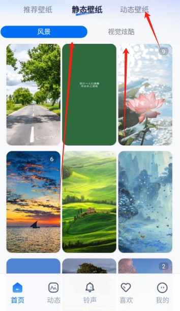 3、在资源分类区,除推荐壁纸与静态壁纸外,可点击 “动态壁纸” 或具体分类标签(如 “治愈系”“科技风”),精准搜寻心仪壁纸类型。
