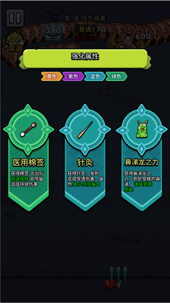 5、肉鸽闯关玩法、每关需消灭不同病毒,有趣的肉鸽闯关玩法带来新体验,提升随机性与新鲜感。