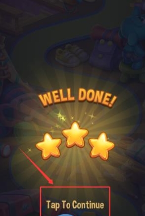 1、关卡评价确认、点击 “继续” 按钮,查看并确认当前关卡的完成评价结果,了解闯关情况。