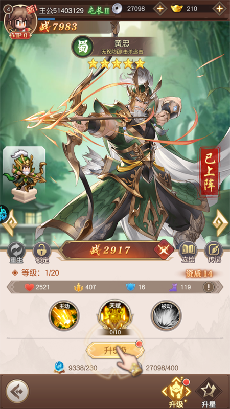 5、武将升级强化、在武将界面中对武将进行升级操作,升级后武将威力会大幅度提升,增强战斗能力。