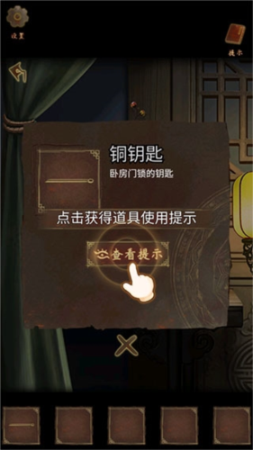 4、保持物品栏钥匙处于选中状态,再点击门锁,即可开门进入卧室