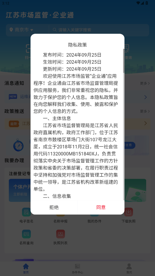 1、平台定位说明、江苏市场监管企业通是江苏省市场监督监管 “企业通” PC 端平台的移动端,依托政务网资源开发。