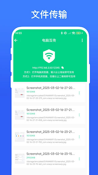 2、提供跨平台文件传输服务,实现手机与电脑间的无线文件互传。采用点对点直连技术,传输过程不消耗移动数据流量。
