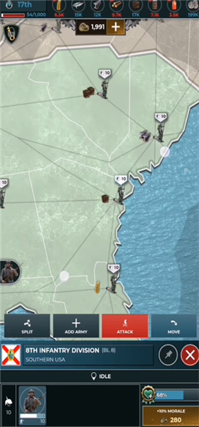 2、逼真的距离和单位移动效果:对真实战场的距离关系与单位移动状态进行了高度模拟,细腻的效果呈现大幅增强了战斗过程中的沉浸感与真实感。