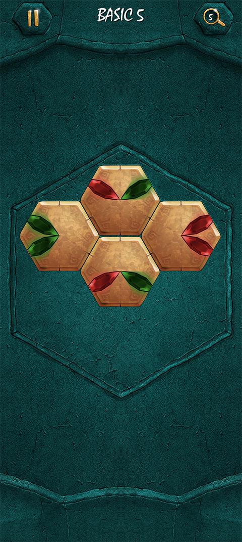 3、核心玩法为拖动拼合,移动不同颜色的六边形瓷砖,使其完美对接组合;
