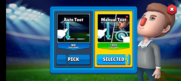 2、共有两种操作方式供各位小伙伴选择,其中【Auto Toot】为自动模式,该模式下玩家可以进行单手操作,只需控制音符的音高,难度更低;【Manual Toot】为手动模式,需要使用双手控制,一只手控制音符的音高,另一只手的手指点击以吹气,玩家可以自由选择。