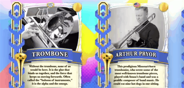 1、深入探寻长号宇宙的神秘魅力,精进演奏技艺,向着 “长号冠军” 的荣耀巅峰全力迈进,成为舞台上最耀眼的演奏强者!