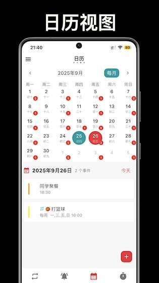 3、重复周期设置:可进行每日、每月、每年等周期设置,支持农历日期及特定星期组合,一次设置即可实现周期性事件提醒。