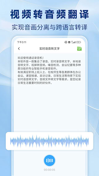 2、通话录音机支持从视频素材中快速提取音频内容,方便保存背景音乐或演讲片段。满足媒体剪辑与学习研究的多样化需求。