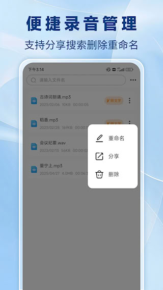 2、提供多格式音频录制能力,兼容标准MP3、无损WAV等格式。可根据存储空间与音质需求灵活选择,适应不同场景下的录音需要。