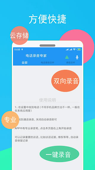 1、电话录音专家支持双向通话自动录音功能,无需手动操作即可完整记录通话内容。录音文件自动添加时间戳与联系人信息,形成标准化电子证据链。