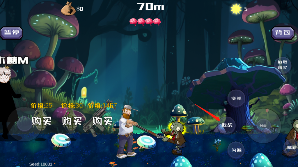 4、若与僵尸距离较近,可切换近战模式攻击,但需注意保持合适距离,过近会导致攻击失效;