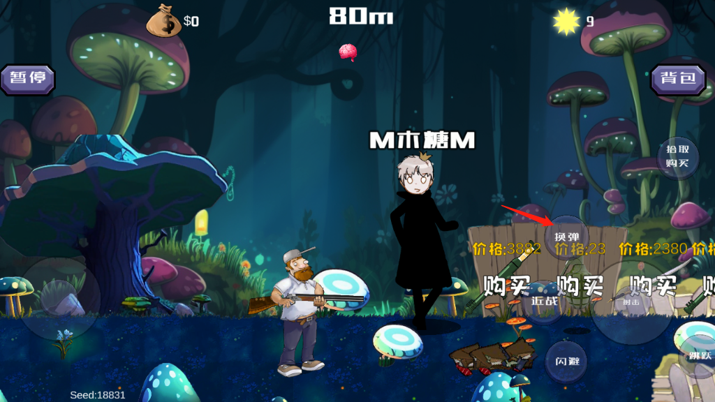 2、右手食指点击对应按钮可触发冲刺或跳跃动作,冲刺能快速转移位置,跳跃可躲避僵尸攻击;