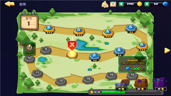 由于角色等级关系到卡牌的解锁,因此前期的主要目标自然就是升级。而升级需要的经验值只能从卡牌升级时获得,因此如何获得大量卡牌才是关键梭子。如果你不充钱开箱子的话,首推冒险关卡,一路推过去的话每章的宝箱里能获得不少的钻石和卡牌,对于前期的卡牌积累是非常有帮助的。剩下的就是出征玩法、商店金币购买、天梯箱子等等,都能获得卡牌。