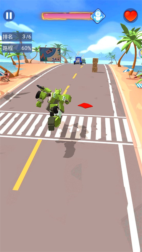1、下载进入后,通过滑动屏幕控制汽车人移动,熟悉基础操作以应对赛道挑战;