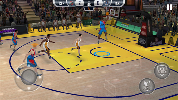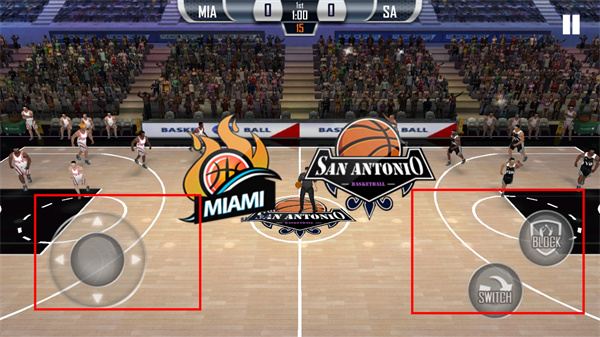 4、比赛操作中,屏幕左侧控制角色移动,右侧功能键负责传球、灌篮等核心动作;