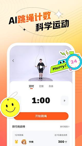 1、AI跳绳功能运用智能视觉技术,自动追踪人体动作并实时给出数据与姿势提示,使日常锻炼更为科学合理。
