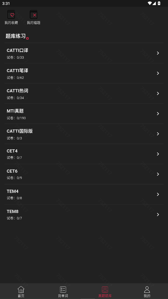 6、返回首页,点击 “真题题库” 版块,即可查看历年考试真题,用于练习与巩固语言知识。