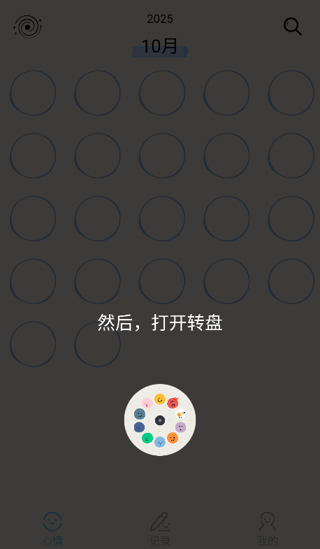 在选定日期后,点击屏幕中央的“转盘”图标,进入记录界面。