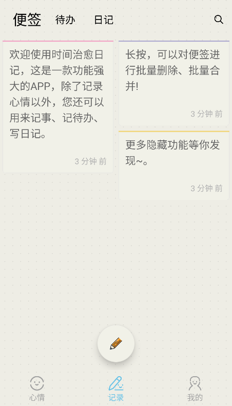 《时间治愈日记》是一款集心情记录、便签记事、待办提醒与日记撰写于一体的多功能应用。您可以通过它: