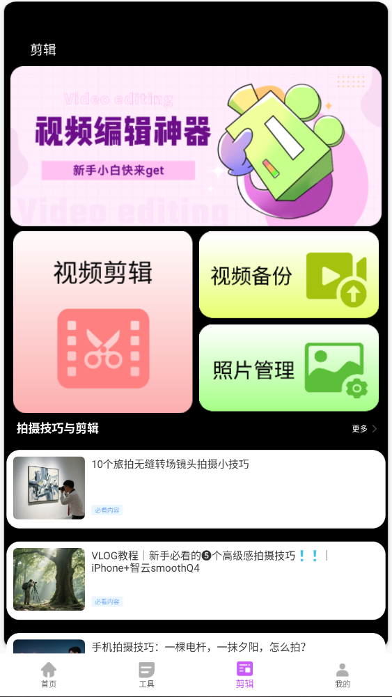 5、在软件内查阅海量拍摄与剪辑技巧教程,学习专业知识,提升拍摄水平和视频制作能力。