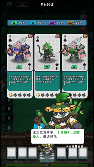 1、卡牌选择:开局系统提供三张卡牌,选择点数最大的一张,为前期战斗奠定优势。