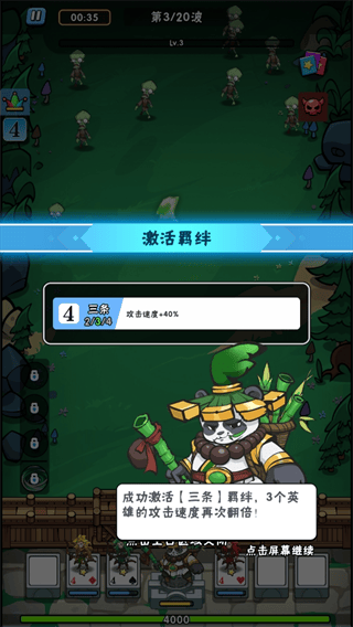 2、阵容组建:收集英雄卡牌,依据点数相同形成对子、三条等羁绊,合理搭配提升战力。