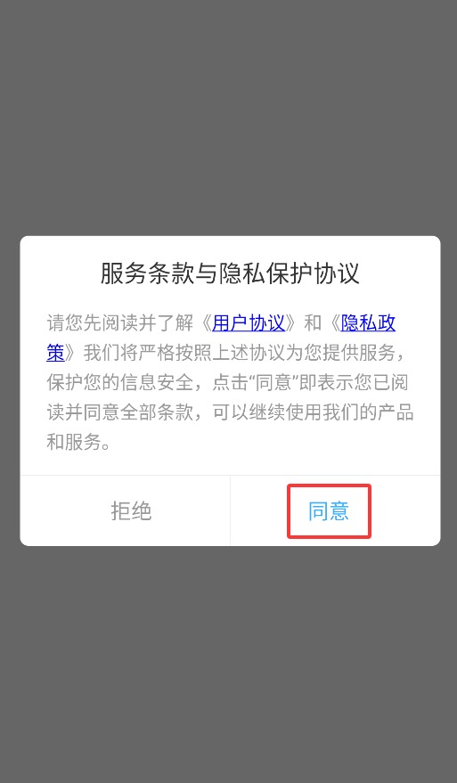 1、首次启动应用时,请点击弹窗中的同意选项,方可进入主界面开始使用。