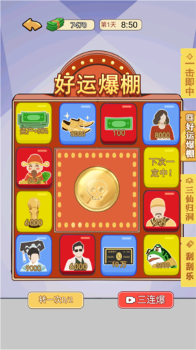 5、里面提供一击即中、好运爆棚、三仙归洞、和刮刮乐,我们点击一击即中,开始之后,玩家只需要点击射击气球,击中即可获取金钱奖励;