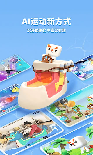 1、将AR实景技术与运动结合的创新模式,通过手机摄像头将虚拟角色叠加于真实客厅环境中,实现虚拟与现实的有趣互动。