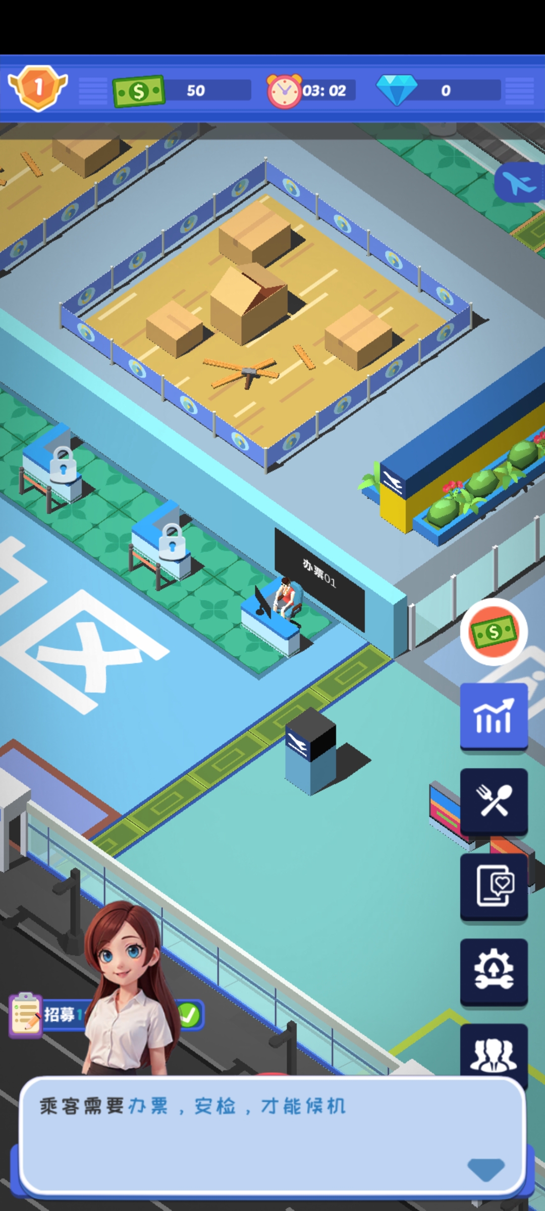 1、整体评价:作为经营类手游,整体可玩性较强,机场运营的细节设计(如安检、航班调度)具有较高真实感;