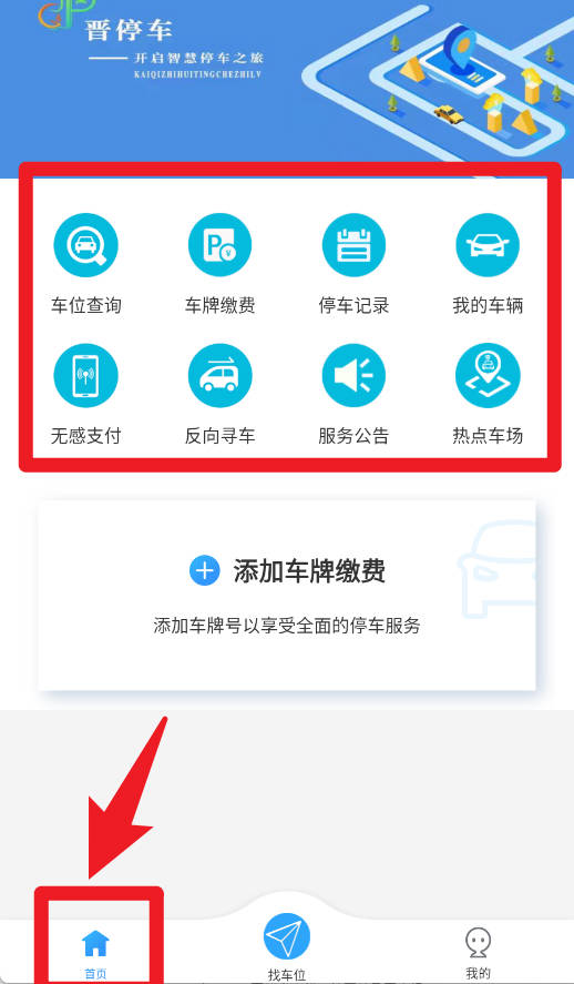 2、在首页可进行车位查询、车牌缴费、停车记录及无感支付等操作,一站式满足停车需求。