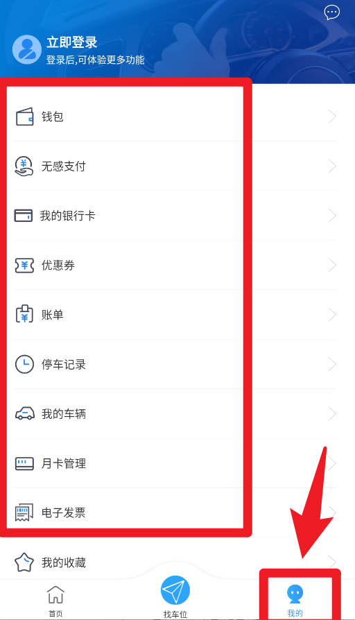 5、我的版块可管理钱包、优惠券、停车记录、车辆及电子发票,轻松完成账户与服务管理。