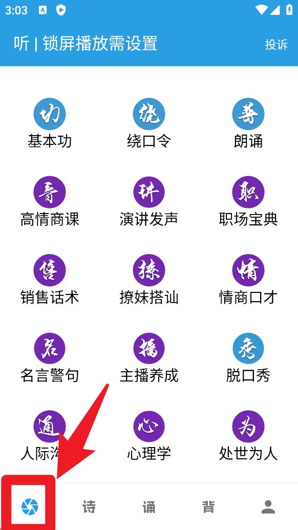 1. 打开应用首页,可在分类中选择基础功、朗诵、演讲等模块,点击进入即可开始学习对应内容。