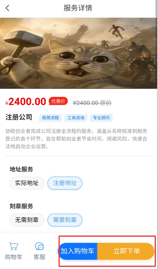 4、进入商品详情页面后,可加入购物车或直接点击立即下单完成购买。
