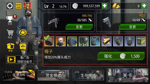 3、进入关卡后,通过精准的触控操作(如瞄准、射击)与战术规划,清除涌来的僵尸,争取通关;