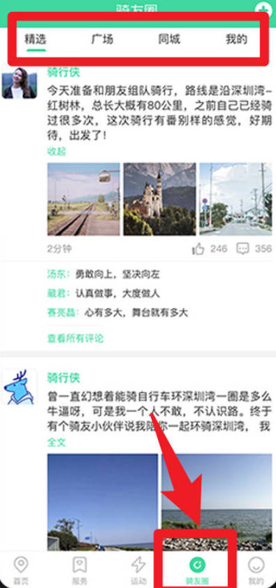5、骑友圈版块让你与同城或全国骑友互动交流,发布动态、分享骑行经历更加有趣。