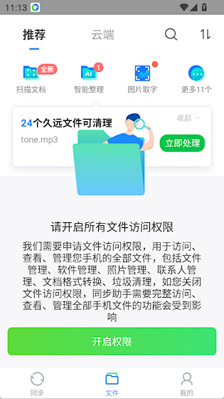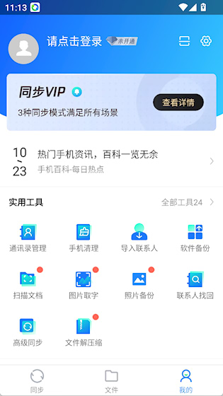 3、“我的”界面提供了通讯录管理、扫描文档、文件解压缩等实用工具