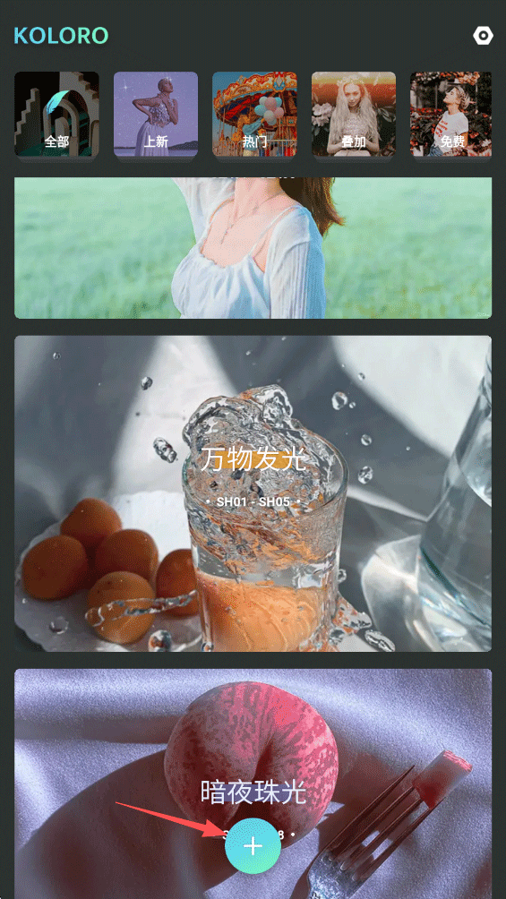 1、打开滤镜君 APP,点击底部 “+” 号按钮,从设备中导入需要编辑的照片。