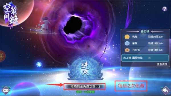 8.空间裂缝是每周任务,这里建议玩家每周末的时候刷,可以通关更高层,如果遇到难度大一点的,需要打一次怪,观察下血量,如果前排血量较低,建议把前排换到后排,把强力点的输出换到前排去扛一轮,下一次再观察血量换回去。