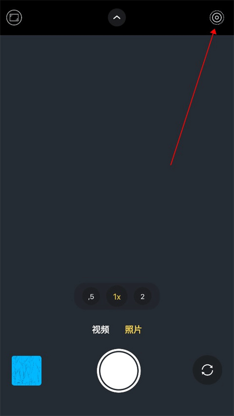 1、打开 iCamera 仿苹果相机中文版,进入主拍摄界面后,点击右上角设置按钮。