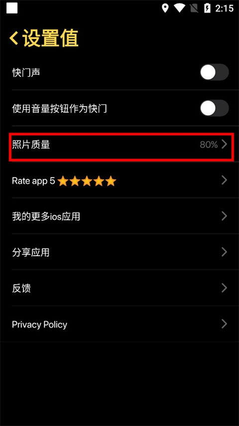 2、在设置界面中找到照片质量设置选项,系统默认设置为百分之八十。