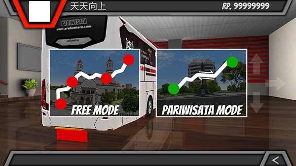 4、游戏模式分两种:左侧红色标注为自由模式(无法接载乘客),右侧绿色标注为任务模式(需按路线接送乘客);