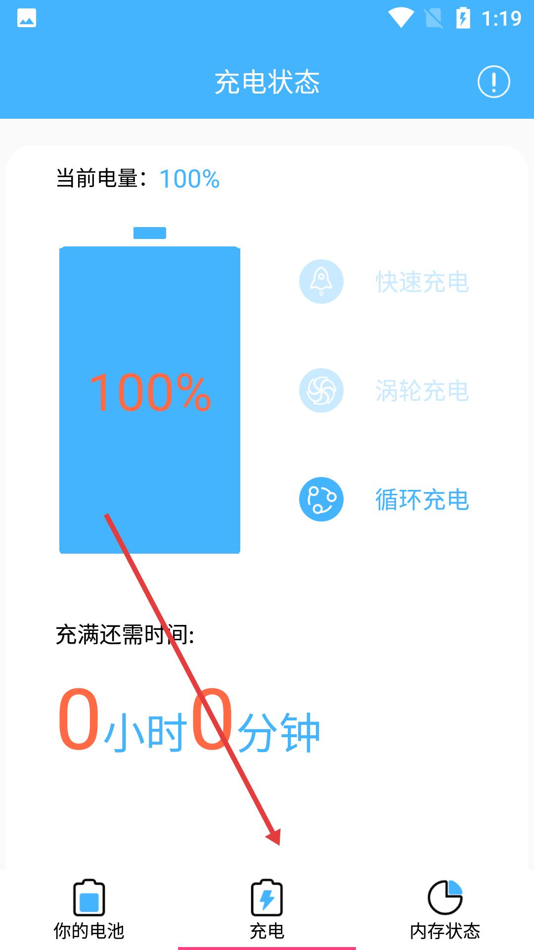 2、充电监控页面实时显示当前电量与充满预估时间,支持快速充电、标准模式与保护模式切换。便于根据需求选择充电方案。